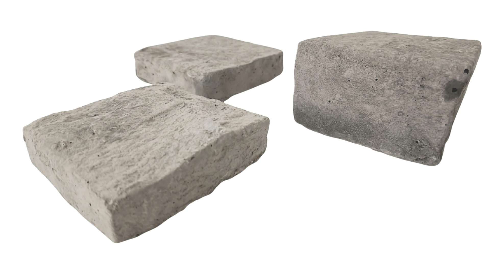 Los Adoquines están fabricados en base a cementos Portland, minerales y pigmentos minerales. Mediante un proceso de vaciado en moldes individuales, se reproduce la apariencia de la piedra natural.